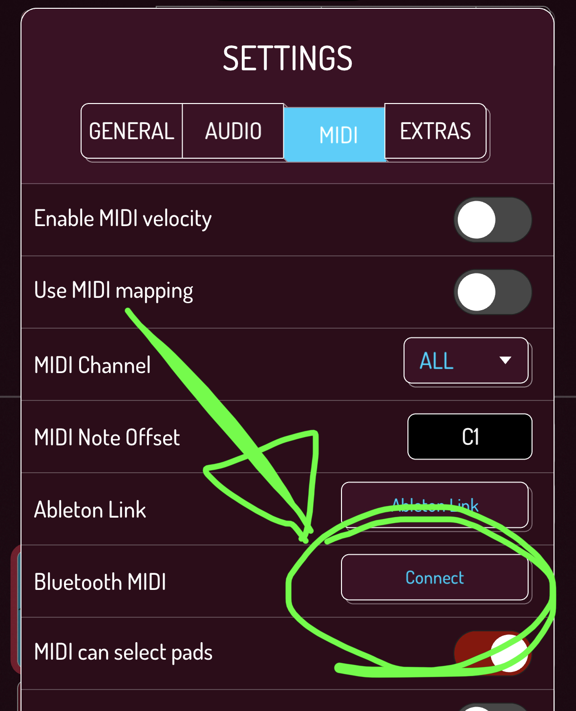 Getting bluetooth MIDI working is different on iOS and Android, the instructions to do it for each are below.