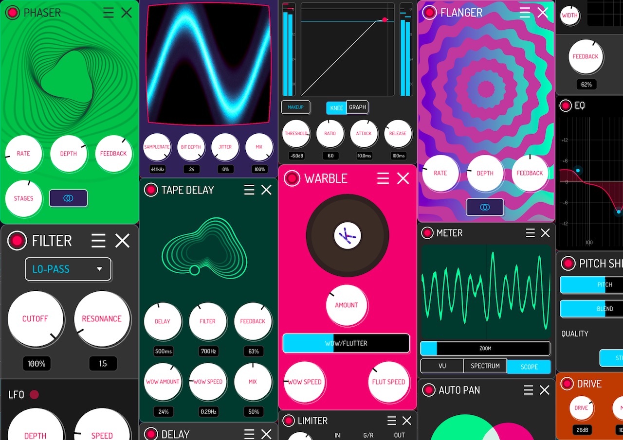29 versatile effects – compressors, filters, phasers etc etc.. More effects will be added in future too!